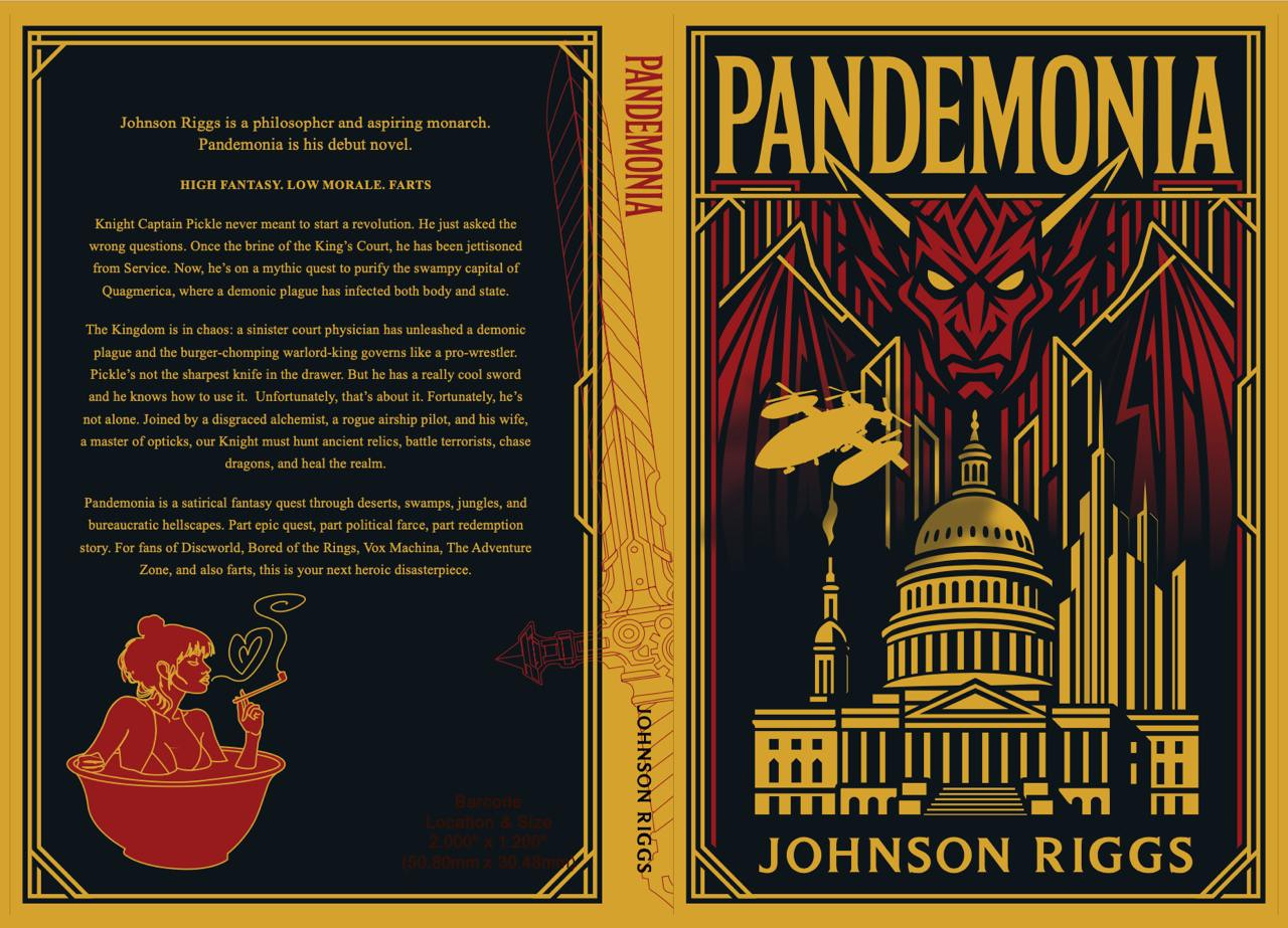 Pandemonia is a satirical fantasy quest through deserts, swamps, jungles, and bureaucratic hellscapes. Part epic quest, part political farce, part redemption story. For fans of Discworld, Bored of the Rings, Vox Machina, The Adventure Zone, and also farts, this is your next heroic disasterpiece.