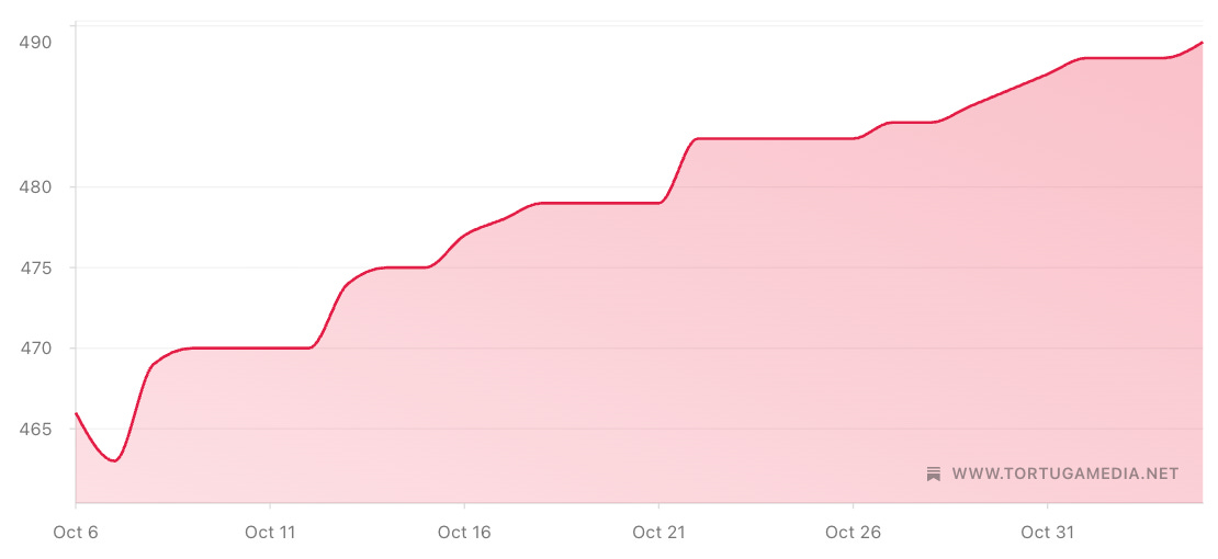 Gained 40 new subscribers to Tortuga Media in October, including a handful of paid subscribers.