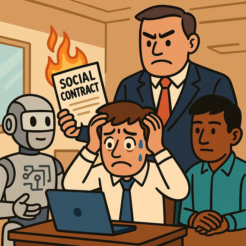 If one party begins to violate the mutual tacit agreement within the social contract, the other party has two options: either to violate in a way that benefits them or to try to formalize and enforce the violated aspect of the social contract. In an employer/employee relationship, the employee has more barriers to formalizing enforcement. Therefore, if the employer begins to violate their side of the social contract, the employee can only violate it in turn.